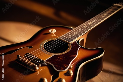Vintage Acoustic-Electric Guitar Close-Up - Warm Wooden Finish with Elegant Design