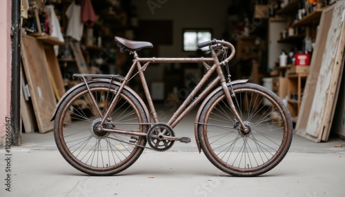 Vintage Bicycle in Rustic Workshop Setting with Unique Character and Charm