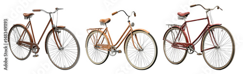 Vintage Bicycles Collection with Distinct Styles and Designs Isolated Transparent Background