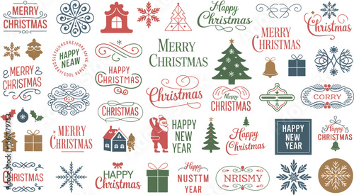 christmas, new year, vintage, vector, element, holiday, greeting, card, invitation, design, merry, happy, santa, tree, snowflake, ornament, house, bell, gift, retro, decorative, label, badge, symbol, icon, illustration, graphic, clip art, drawing, art, artwork, celebration, seasonal, winter, december, festive, typography, lettering, script, calligraphy, tags, seal, emblem, year