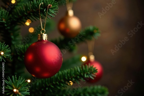 Vintage Christmas tree, red ball ornament, sparkling lights , glitter, decoration, holiday