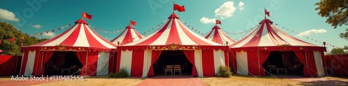 Vintage circus tent, vibrant red & white stripes Festive carnival atmosphere , festival, stripes