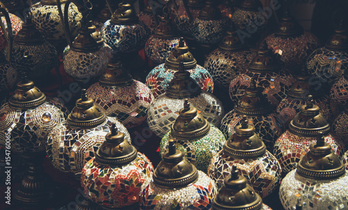 Vintage colorful Turkish lamps on street.