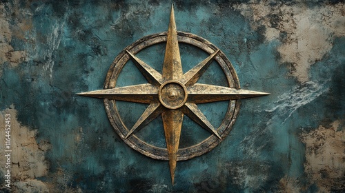 Vintage compass design on weathered blue and brown background with intricate textures and details showcasing artistic craftsmanship