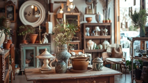 antique, vintage, decor, shop, interior, cosy, old-fashioned, retro, nostalgic, store, pottery, ceramic, vase, table, wooden, display, ornament, home, rustic, decoration, classic, traditional, furniture, lighting, warmth, design, arrangement, collectable, heritage, style, aesthetic, architecture, background, detail, nostalgia, handcraft, artistic, scene, boutique