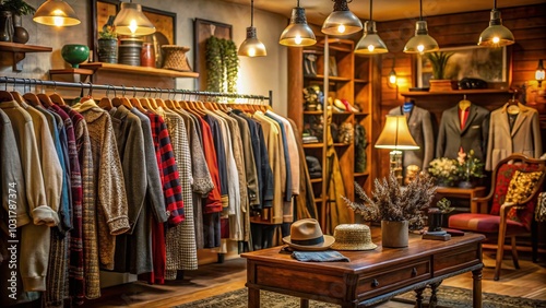 Vintage Fashion Boutique: Trendy Second-Hand Clothing Rail Display
