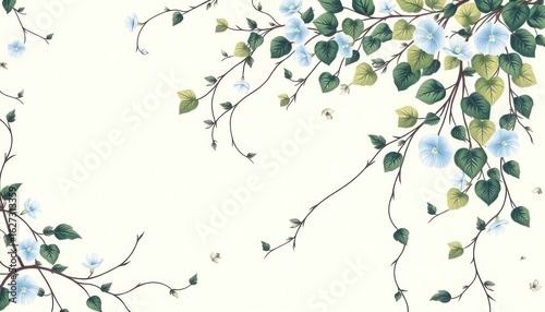morning, floral, vintage, botanical, foliage, light, blue, pastel, elegant, climber, plant, delicate, nature, invitation, design, card, decor, natural, aesthetic, gentle, harmony, springtime, beauty, ornate, pattern, summer, detail, artwork, drawing, blossom, tree branch, tendril, climbing, growth, freshness, decorative, creeper, illustration, wallpaper, leaf, bloom