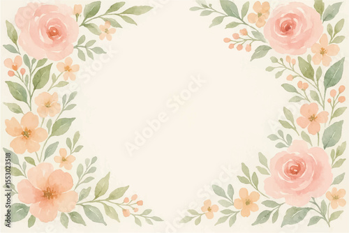 Vintage floral background with romantic pink roses, elegant frame, and decorative hearts for a wedding or Valentine's Day card design
