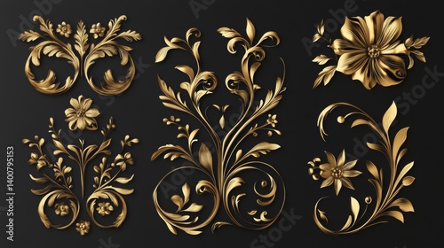 Vintage gold floral decorations used as ornamental graphic elements.