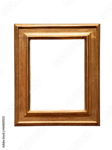 Vintage golden wood frame isolated on white background