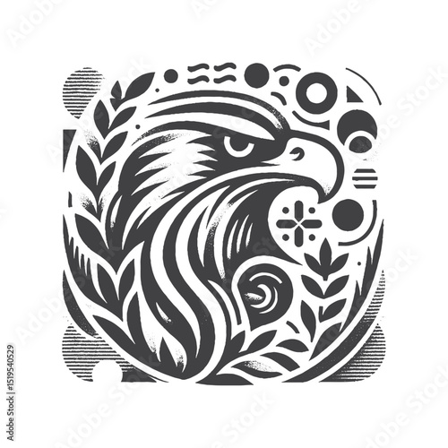eagle, bird, bird of prey, predator, wildlife, animal, head, abstract, shape, geometric, artistic, creative, wild, nature, wing, beak, sharp, bold, design, modern, pattern, stylised, dynamic, detailed, natural, flight, strong, high-coloured, logotype, vector, icon, signs, symbol, illustration, printing, engrave, line art, retro, hand-drawn, t-shirt, vintage, apparel