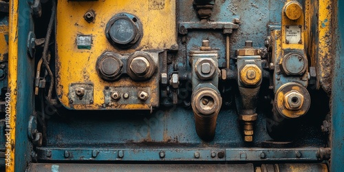 Vintage hydraulic system of a forklift truck, showcasing the intricate mechanics and design of the old hydraulic system in functional equipment, ideal for industrial and engineering themes.