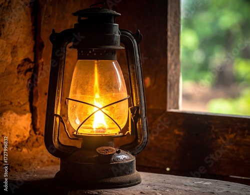 lantern, kerosene, flames, light, rustic, old, window, warm, antique, wooden, dark, glasses, metal, brown, interior, country, rural, still, glowing, vintage, aged, detail, illuminated, corner, shadow, warmth, peaceful
