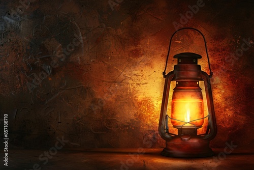 Vintage lantern with a warm glow on a dark brown background nostalgic and cozy open space around for text