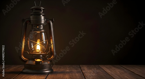Vintage Oil Lantern on Wooden Table in Warm Lighting Environment