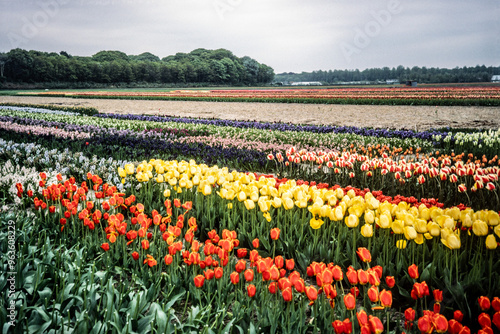 Vintage photograph of a Dutch tulip farm in the 1980s