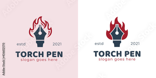 vintage retro logo of pen ink torch or fire pen logo vector template