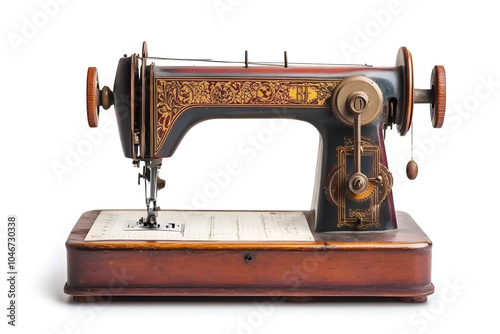 Vintage sewing machine isolated on white background