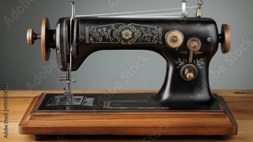 Vintage Sewing Machine on Wooden Table with Intricate Details and Classic Design for Tailoring and Crafting Enthusiasts