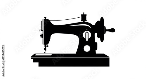 Vintage Sewing Machine Silhouette Icon, A Classic Tool for Tailoring and Crafting