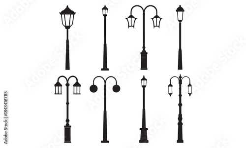 Vintage Street Lamp Silhouettes – Classic Outdoor Lamp Post Illustrations & Vector Designs