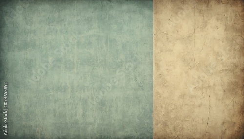 Vintage Texture Background Two Toned Paper. A textured background image with a vertical split between a pale bluegreen left side and a beigebrown right side. Both sides show signs of aging and wear.