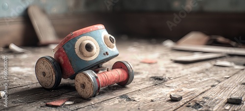 robot, toy, vintage, retro, tin, metal, classic, antique, collectable, old, mechanical, childhood, nostalgic, rustic, industrial, floor, wood, colourful, design, machinery, plaything, decoration, figure, blue, red, yellow, aged, distressed, rust, detail, craftsmanship, object, miniature, character, play, decor, surface, hand-made, hobby, style, collection