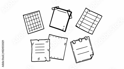 vector, illustration, scalable, icon, paper, torn, vintage, grunge, vignetting, drawing, hand-drawn, document, sheet, note, notebook, graph, grid, line, textured, aged, retro, old, scrapbooking, design, element, graphic, asset, clip art, set