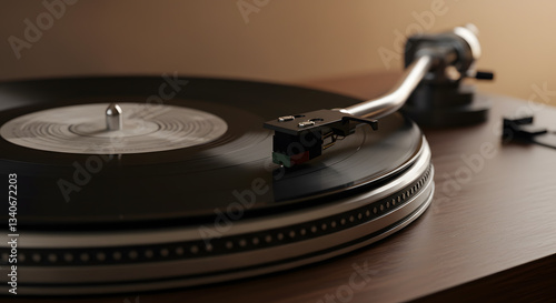 Vintage Turntable Close-up: Warm Tones, Analog Music Playback Detail