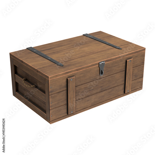 Vintage wooden crate box with metal lock and rope handles