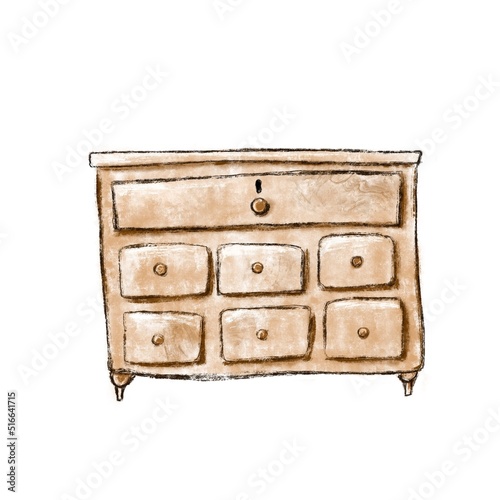 vintage wooden dresser watercolor illustration, hand drawn clipart