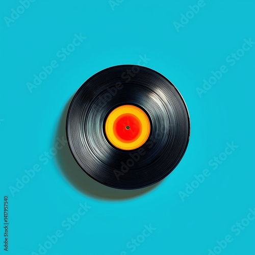 Vinyl Record on Light Blue Background