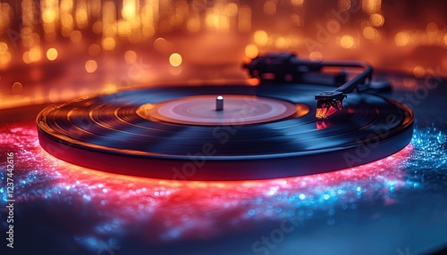 vinyl, turntable, record, music, party, light, night, sound, retro, vintage, dj, audio, dance, club, celebration, entertainment, analog, nostalgia, spin, groove, disco, song, album, classic, collection, needle, stereo, high fidelity, festive, atmosphere, holiday, new year, christmas, event, performance, rythm, instrument, melody, tune, listening, relaxation, background, abstract, colourful, bright, dark, moody, glowing