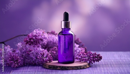 violet bottle with oil or serum in a trendy colors