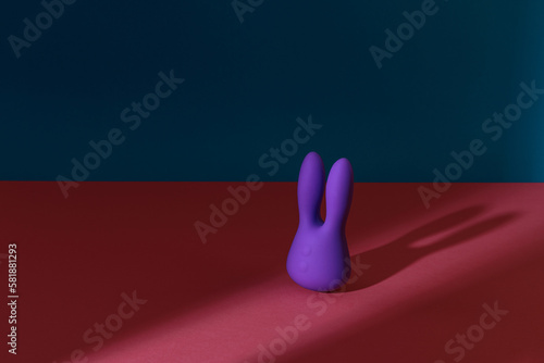 Violet dildo vibrator for clitoris on colored background with contrast shadows. Sex toy for adult
