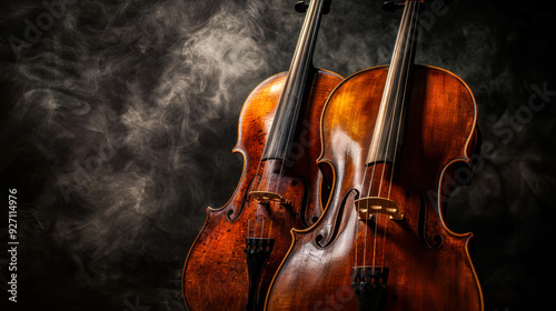 2, violin, bow, smoky, dark, background, copy space, string, instrument, music, classical, performance, concert, wooden, musical, wallpaper, banner, poster, design, print, artistic, elegant, traditional, sound, string, orchestral, studio, closeup, detail, fine art, hand-made, art, creative, elegance, closeup, smoke, dramatic, lighting, duet, symphony, acoustic, event, wood, vintage, professional, classical music
