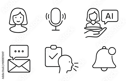 Virtual Assistant Icons. Outline vector icons of virtual assistants: floating avatar, voice interface,