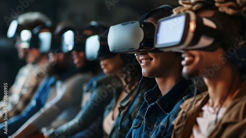 life events, group, entertainment, technology, headset, interactive, simulation, user, enjoyment, digital, innovation, futuristic, goggles, three-dimensional, audience, participation, excitement, leisure, activity, modern, tech, contraption, multimedia, visual, display, interface, engagement, amusement, electronic, equipment, connectivity, sensory, adventure, realism, social