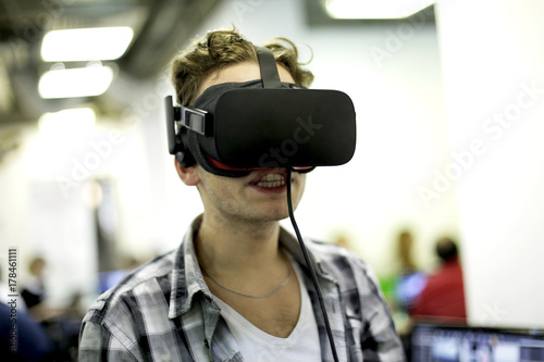 headset, high technology, goggles, life events, entertainment, excited, innovation, modern, white, young, virtual, reality, enjoying, technology, device, activity, tech, three-dimensional, startup, video, amazement, display, wearable, alone, simulation, vision, video game, gear, caucasian, male, equipment, game, contraption, futuristic