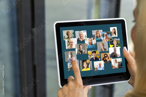 Virtual video conference, Work from home, Brainstorm planing teamwork, business team making video call by web, Group of team online telecommunication meeting by digital tablet