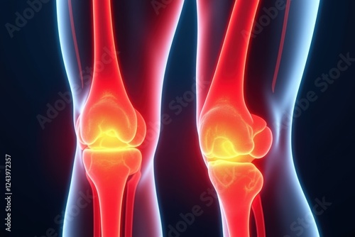 Visual Representation of Human Knee Joints Displaying Joint Anatomy, Ligaments, and Surrounding Tissues in a Detailed Digital Illustration