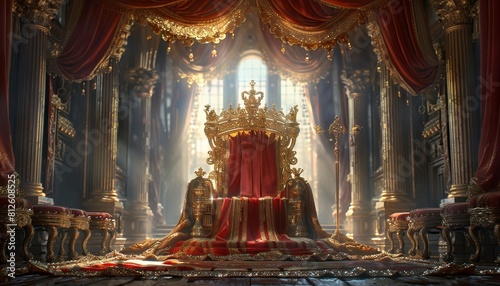 visualise, majestic, throne, room, gild, scepter, crown, velvet, cushion, symbolize, glamour, palace, treasure, grandeur, legend, monarchy, respect, decor, gem, power, noble, landmark, brilliancy, monarch, empire, elite, royalty, century, cherish