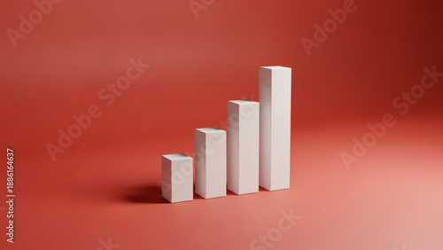 Visualizing consistent progress and upward trends through a minimalist bar chart composed of four white blocks on a striking red backdrop, representing improvement and achievement.