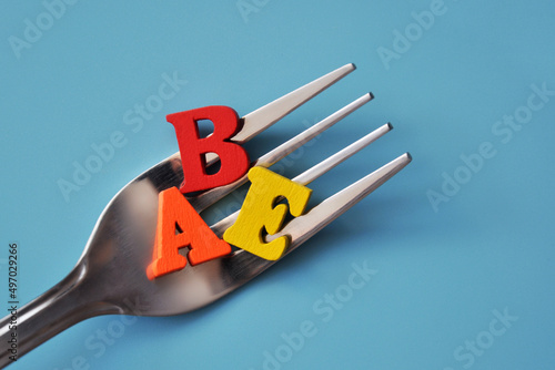 Vitamins on the fork. Vitamin A, B,E in products