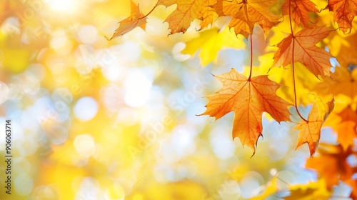 Vivid autumn sunlight filtering through vibrant maple leaves on a crisp fall day