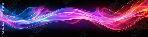 Vivid Color Spectrum, Cyan, Magenta, Fiery Red Flowing Waves Against Black, Graceful Lines