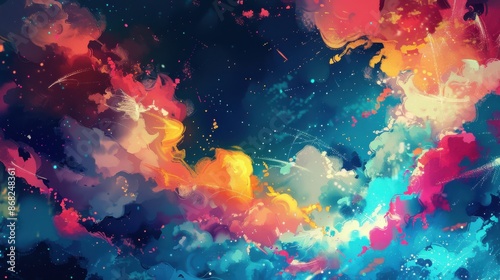 Vivid, Colorful Galaxy Background, Abstract Nebula Cloud Illustration