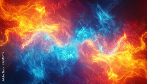 Vivid Flames and Radiant Energy Swirling in Dark Background