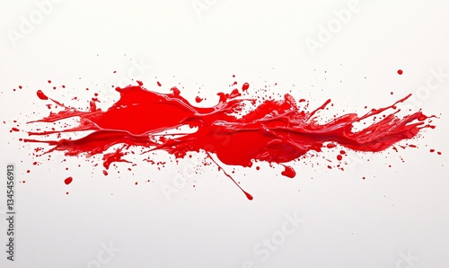 Vivid Red Paint Splash on Crisp White Canvas Background.