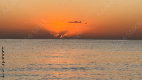 Vivid sunrise over the sea. Peaceful and captivating atmosphere. Nature background, relaxation concept, travel theme and inspirational visual